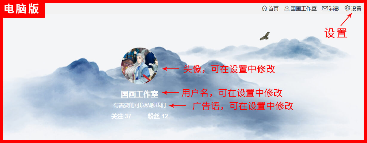 还有头像、用户名、广告语都在相应的设置中容易找到。
