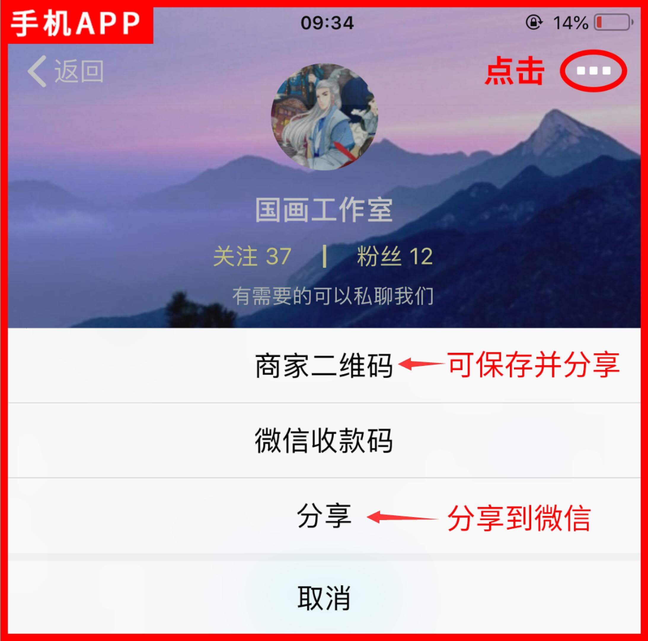 (2)手机app可以保存后分享二维码,或者直接分享到微信